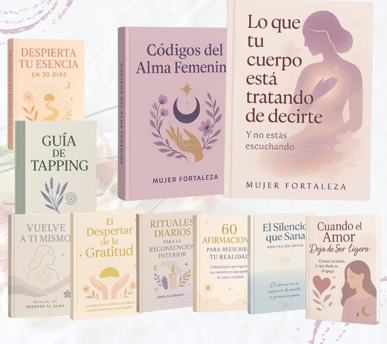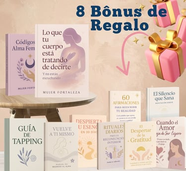 🎁Y también recibirás 8 bonos exclusivos que acompañan tu proceso con amor: Vuelve a ti misma, Despierta tu esencia en 30 días, Rituales diarios para la reconexión interior, 50 Afirmaciones para reescribir tu realidad, Cuando el amor deja de ser ligero, El despertar de la gratitud, El Silencio que Sana: Meditación Breve, Guía de Tapping.