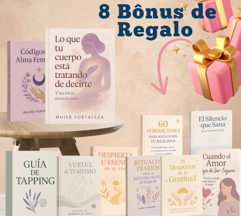 💞 Sabemos que esto no es solo un libro…Es un antes y un después en la forma de escuchar tu cuerpo, tus emociones y tu alma.Y como queremos que tu proceso de sanación sea profundo, sostenido y acompañado…Te llevás todos estos bonos exclusivos para sostenerte en cada paso.